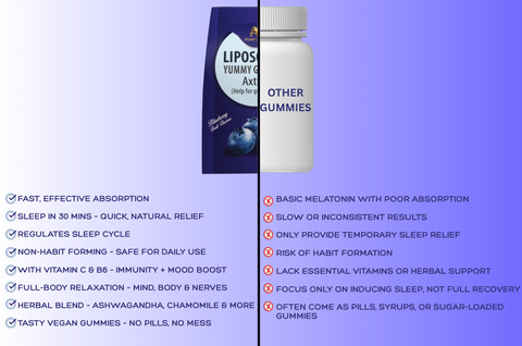 Liposomal technology helps melatonin absorb better in your body, making the gummies more effective and faster acting than regular melatonin supplements.